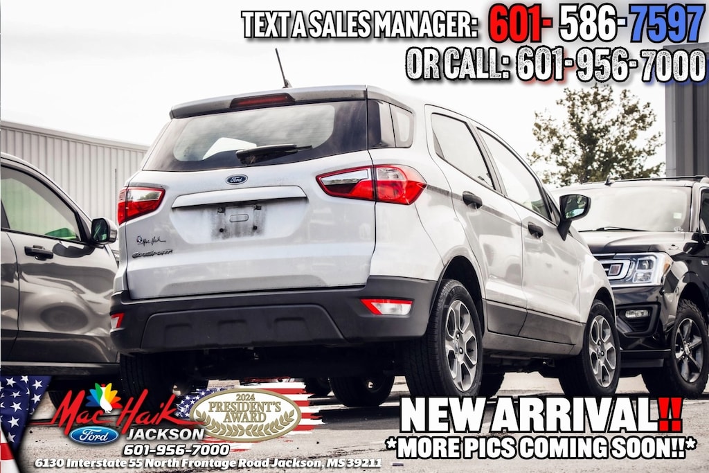 Moondust Silver Metallic 2021 Ford EcoSport S FWD 6-Speed Automatic EcoBoost 1.0L I3 GTDi DOHC Turbocharged VCT EcoSport S, 4D Sport Utility, 6-Speed Automatic, 3.44 Axle Ratio, 4-Wheel Disc Brakes, Brake assist, Electronic Stability Control, Equipment Group 100A, Exterior Parking Camera Rear, Fully automatic headlights, Speed-sensing steering, Steering wheel mounted audio controls, SYNC Communications & Entertainment System, Wheels: 16" Low-Gloss Magnetic-Painted.