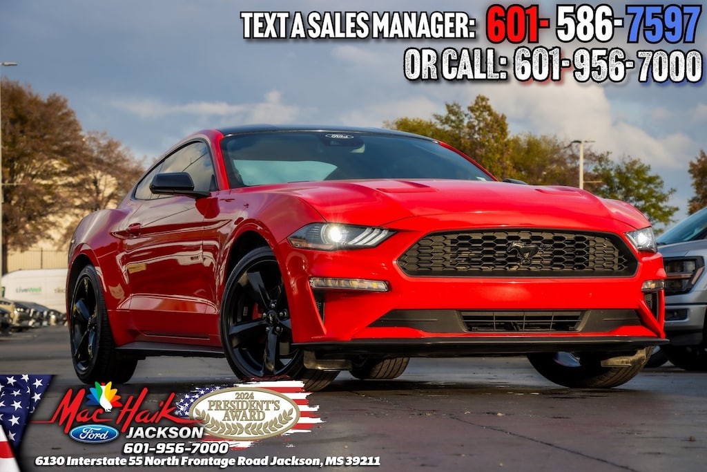 Race Red 2022 Ford Mustang EcoBoost RWD 10-Speed Automatic EcoBoost 2.3L I4 GTDi DOHC Turbocharged VCT Mustang EcoBoost, 2D Coupe, EcoBoost 2.3L I4 GTDi DOHC Turbocharged VCT, 10-Speed Automatic, 3.15 Limited Slip Rear Axle Ratio, Auto High-beam Headlights, Black Accent Package, Black Blade Decklid Spoiler, Black Front & Rear Pony Badges, Black Grille, Black Mirror Caps, Electronic Stability Control, Equipment Group 100A, Fully automatic headlights, Painted Black Roof, Rear Parking Sensors, Telescoping steering wheel, Tilt steering wheel, Wheels: 19" x 8.5" Ebony Black-Painted Aluminum.