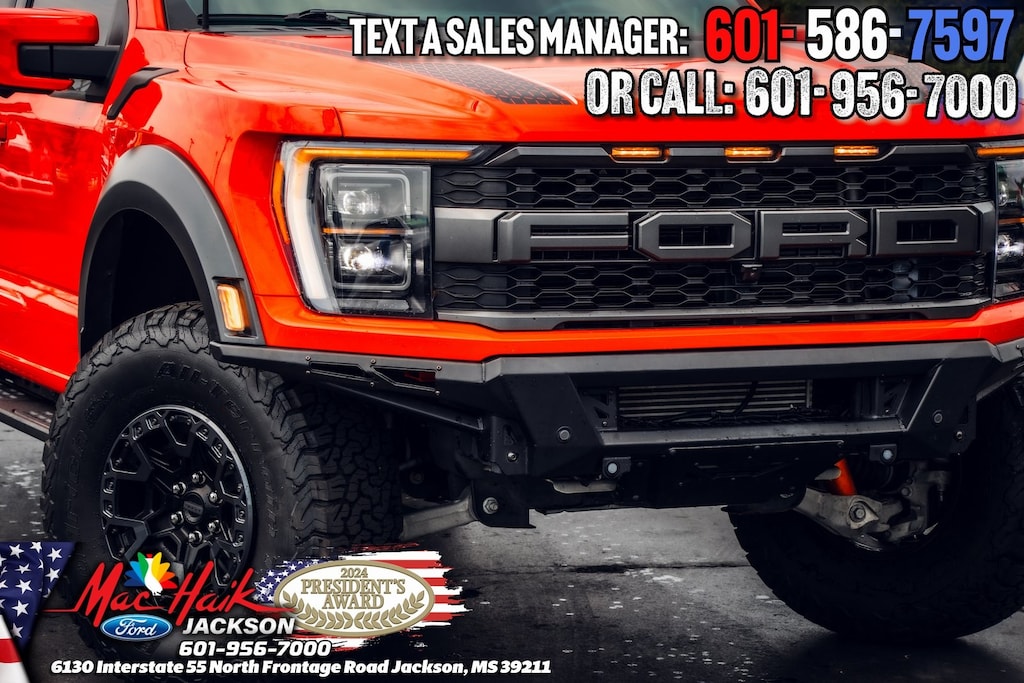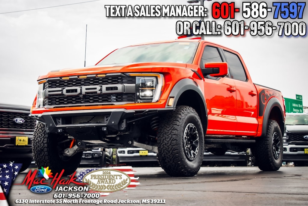 Code Orange Metallic 2023 Ford F-150 Raptor 4WD 10-Speed Automatic 3.5L V6 EcoBoost New Tires!, 37" Tires, F-150 Raptor, 4D SuperCrew, 4WD, 18 Speakers, Adaptive suspension, AM/FM radio: SiriusXM with 360L, Auto High-beam Headlights, Automatic temperature control, Brake assist, Electronic Locking w/4.10 Axle Ratio, Equipment Group 801A Standard, Exterior Parking Camera Rear, Fully automatic headlights, GVWR: 7,300 lbs Payload Package, Lane Departure Warning System, Memory seat, Moonroof & Tailgate, Power Tailgate, Pro Power Onboard - 2KW, Radio: B&O Unleashed Sound System by Bang & Olufsen, Raptor Exterior Graphics Package, Steering Wheel Heat Removal (DISC), Steering wheel mounted audio controls, SYNC 4 w/Enhanced Voice Recognition, Tough Bed Spray-In Bedliner, Twin Panel Moonroof, Wheels: Unique 17" Forged Aluminum Bead-Lock Capable.
