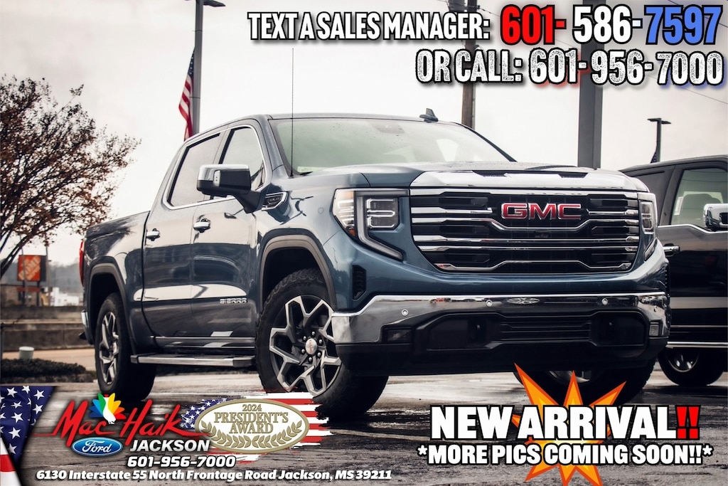 Downpour Metallic 2024 GMC Sierra 1500 SLT 4WD 10-Speed Automatic EcoTec3 5.3L V8 Sierra 1500 SLT, 4D Crew Cab, EcoTec3 5.3L V8, 10-Speed Automatic, 4WD, Downpour Metallic, Dark Walnut/Slate Leather, 120-Volt Interior Power Outlet, 170 Amp Alternator, 2 Charge/Data USB Ports, 2 Type-C Charge-Only Rear USB Ports, 6-Speaker Audio System Feature, Adaptive Cruise Control, All-Weather Floor Liner (LPO), Auto-Locking Rear Differential, Auxiliary External Transmission Oil Cooler, Chrome Header & Chrome Grille Insert Bars, Chrome Wheel To Wheel Assist Steps, Color-Keyed Carpeting Floor Covering, Deep-Tinted Glass, Dual Exhaust System, Electric Rear-Window Defogger, Floor-Mounted Center Console, Front Bucket Seats, Front Frame-Mounted Black Recovery Hooks, Front Rain-Sensing Wipers, GMC Connected Access Capable, HD Rear Vision Camera, HD Surround Vision, Heated 2nd Row Outboard Seats, High Capacity Suspension Package, Hill Descent Control, Hitch View, In-Vehicle Trailering System App, Integrated Trailer Brake Controller, Keyless Open & Start, LED Cargo Area Lighting, Manual Tilt-Wheel & Telescoping Steering Column, Off-Road Suspension, OnStar & GMC Connected Services Capable, Perimeter Lighting, Power Door Locks, Power Front Passenger Windows w/Express Up/Down, Power Front Windows w/Driver Express Up/Down, Power Rake & Telescoping Steering Column, Power Rear Windows w/Express Down, Power Sliding Rear Window w/Rear Defogger, Preferred Equipment Group 4SA, Premium Bose 7-Speaker Sound System, ProGrade Trailering System, Push Button Start, Rear Cross Traffic Braking, Rear Pedestrian Detection, Rear Wheelhouse Liners, Remote Vehicle Starter System, Safety Alert Seat, Sierra Safety Plus Package, SiriusXM w/360L, SLT Convenience Package, SLT Preferred Package, SLT Premium Plus Package, Spray-On Pickup Bedliner w/GMC Logo, Standard Suspension Package, Steering Wheel Audio Controls, Theft Deterrent System (Unauthorized Entry), Trailer Camera Provisions, Trailer Side Blind Zone Alert, Trailering Package, Ultrasonic Front & Rear Park Assist, Universal Home Remote, Ventilated Driver & Front Passenger Seats, Wheels: 20" Polished Aluminum w/RFX, Wi-Fi Hotspot Capable, Wireless Charging, X31 Hard Badge, X31 Off-Road & Protection Package, X31 Off-Road Package.
