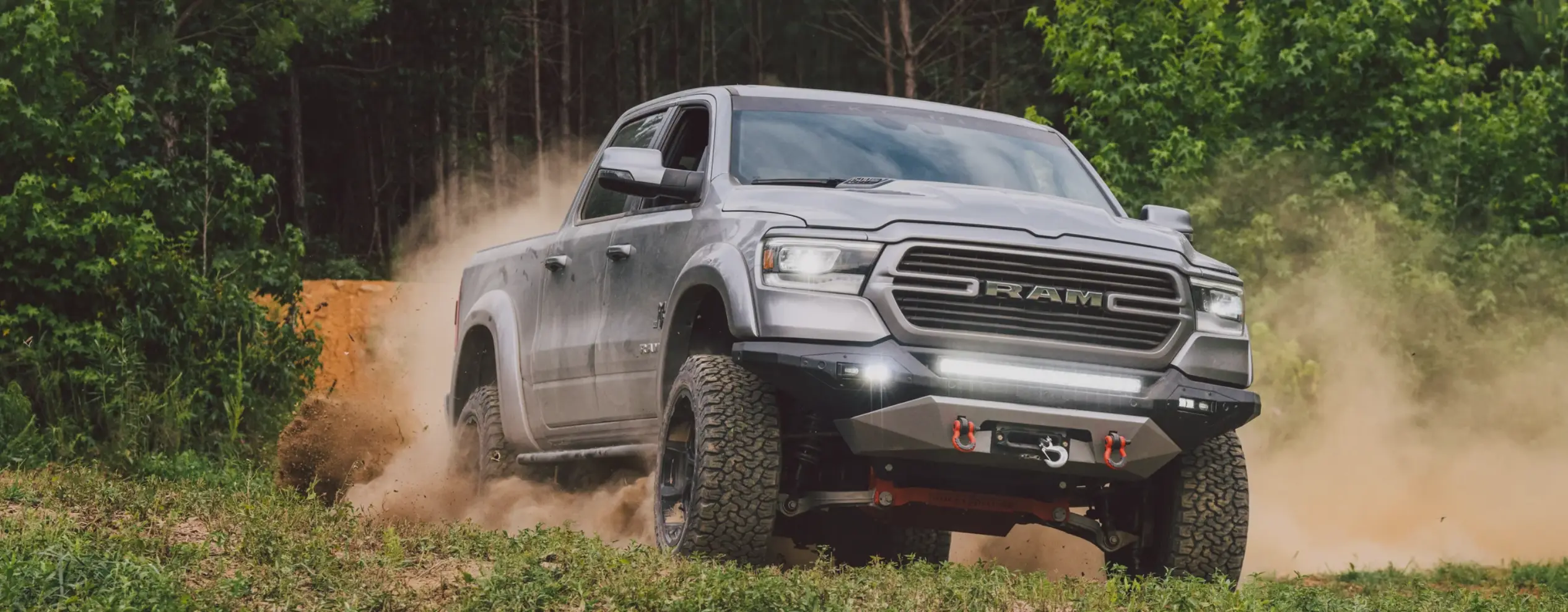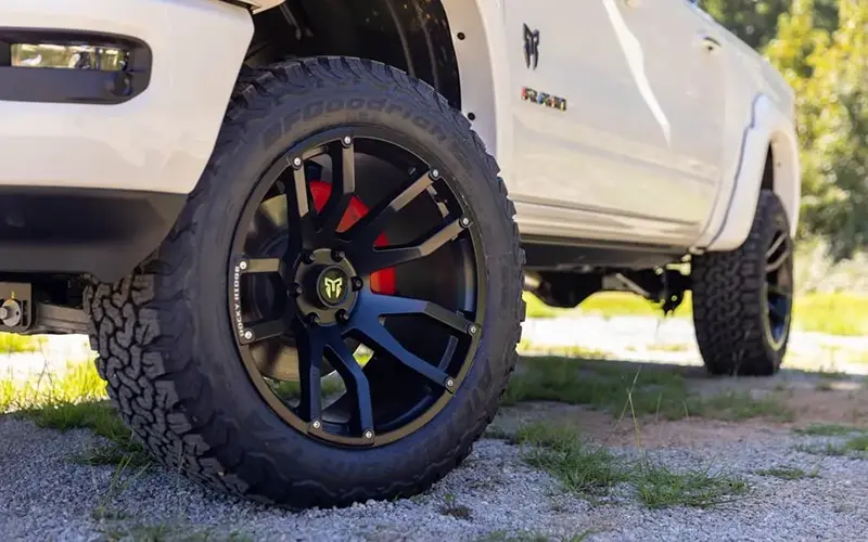 Each Fox Factory Ram 1500 is equipped with aggressive 35 inch premium all-terrain tires built to handle challenging environments with ease. Advanced tread design improves traction across mud, dirt, and uneven surfaces, while custom wheels complete the bold look and ensure confident performance wherever the road or trail takes you.