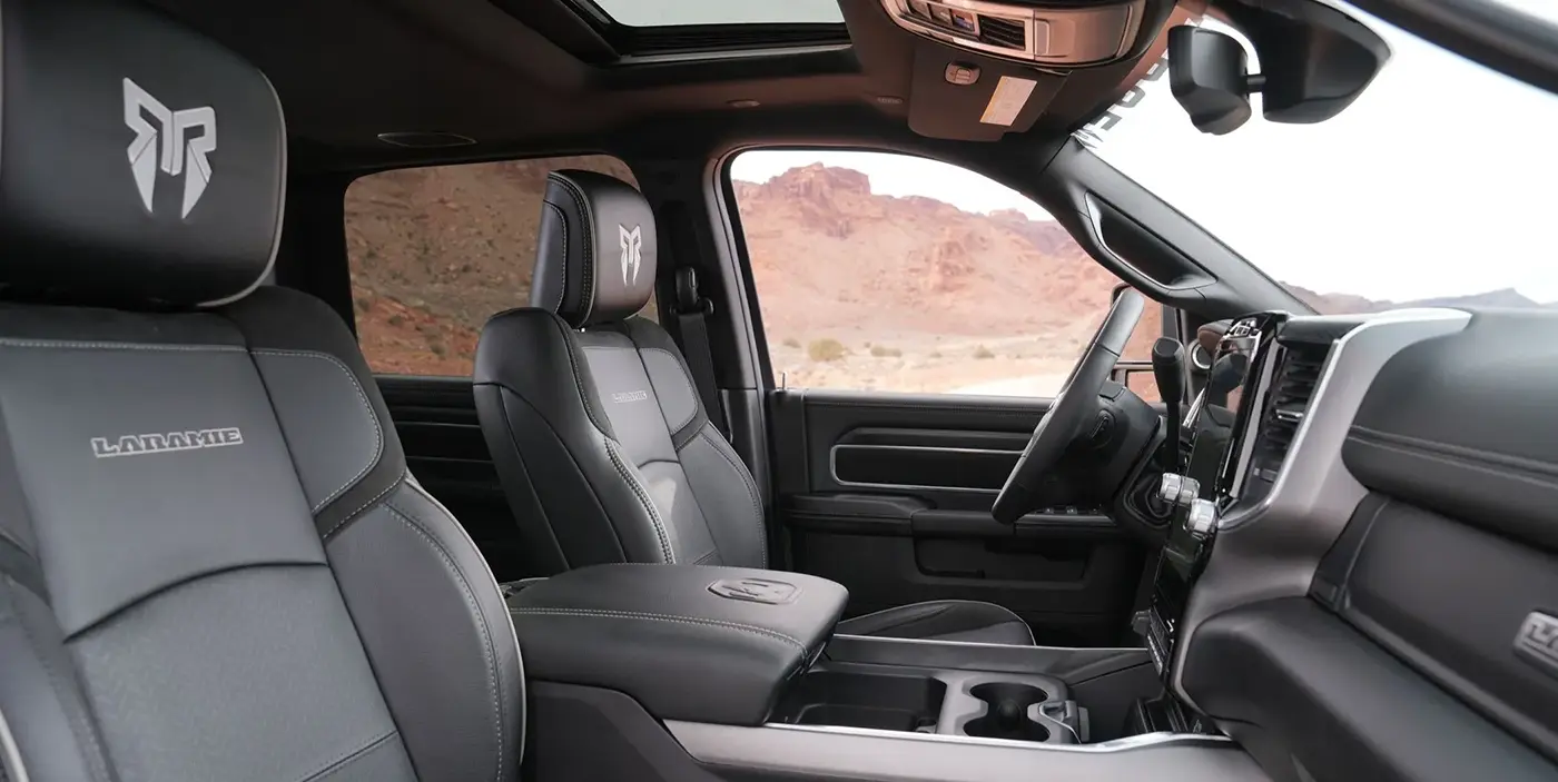 At Flowood Mac Haik CDJR, our custom lifted Ram 1500 builds are designed to deliver a premium driving experience without compromising rugged capability. The Rocky Ridge pairs upscale interior upgrades with FOX Factory quality, giving drivers around Jackson, Brandon, and Ridgeland a truck that feels refined for daily driving and ready for the next adventure. From comfortable seating details to practical protection and secure storage, this Ram 1500 interior is built to fit your lifestyle.