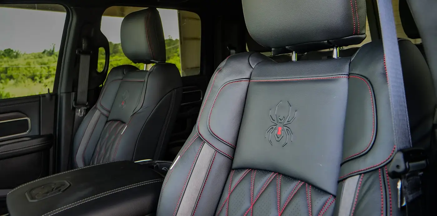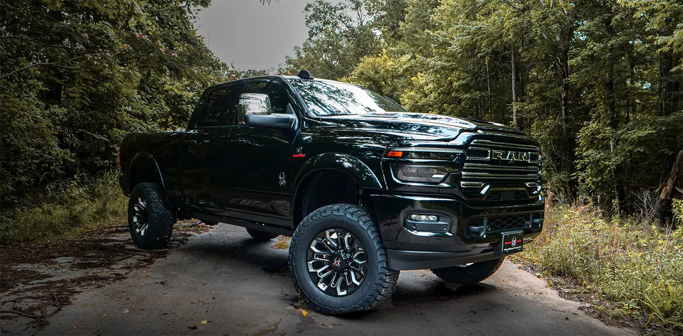 The Black Widow delivers a bold blend of heavy-duty performance and upscale refinement. Built to handle demanding terrain while maintaining a premium interior experience, this custom lifted Ram 2500 is engineered for drivers who want serious capability without sacrificing comfort.