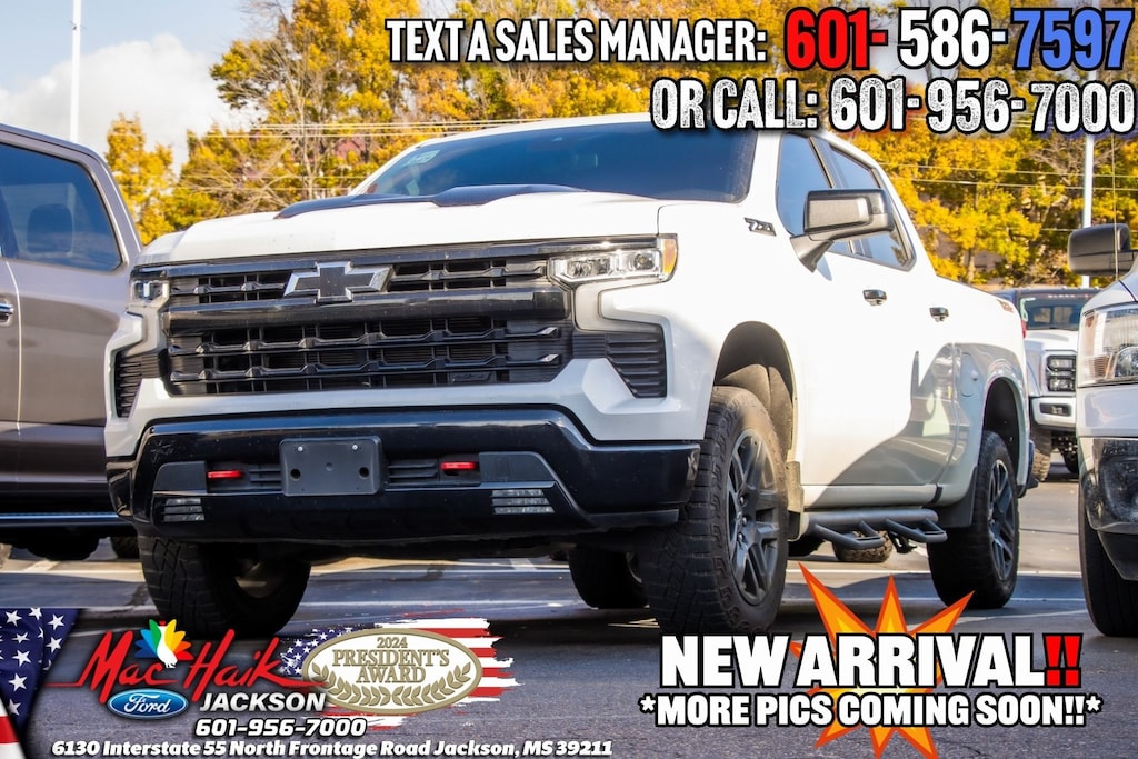 Iridescent Pearl Tricoat 2023 Chevrolet Silverado 1500 LT Trail Boss 4WD 10-Speed Automatic EcoTec3 6.2L V8 Silverado 1500 LT Trail Boss, 4D Crew Cab, EcoTec3 6.2L V8, 10-Speed Automatic, 4WD, Jet Black w/Leather-Appointed Front Seat Trim, 10-Way Power Driver Seat w/Lumbar, 12.3" Multicolor Reconfigurable Digital Display, 120-Volt Instrument Panel Power Outlet, 3.23 Rear Axle Ratio, 4-Wheel Disc Brakes, 6-Speaker Audio System, All-Weather Floor Liner (LPO) (AAK), Auto High-beam Headlights, Auto-Locking Rear Differential, Automatic temperature control, Black Name Plates (LPO), Bluetooth® For Phone, Chevytec Spray-On Black Bedliner, Color-Keyed Carpeting Floor Covering, Compass, Convenience Package, Dark Essentials Package (LPO), Deep-Tinted Glass, Dual Rear USB Ports (Charge Only), Dual-Zone Automatic Climate Control, Electric Rear-Window Defogger, Electrical Steering Column Lock, Electronic Cruise Control, Electronic Stability Control, EZ Lift Power Lock & Release Tailgate, Front LED Fog Lamps, Fully automatic headlights, HD Rear Vision Camera, Heated Driver & Front Outboard Passenger Seats, Heated Power-Adjustable Outside Mirrors, Heated Steering Wheel, Heavy-Duty Air Filter, High Gloss Black Mirror Caps, Hill Descent Control, Inside Rear-View Mirror w/Tilt, Keyless Open & Start, LED Cargo Area Lighting, OnStar & Chevrolet Connected Services Capable, Performance Red Recovery Hooks, Power Front Windows w/Driver Express Up/Down, Power Front Windows w/Passenger Express Down, Power Rear Windows w/Express Down, Preferred Equipment Group 2LT, Protection Package, Rear 60/40 Folding Bench Seat (Folds Up), Rear Wheelhouse Liners, Remote Vehicle Starter System, SiriusXM w/360L, Speed-sensing steering, Standard Tailgate, Steering Wheel Audio Controls, Suspension Package, Theft Deterrent System (Unauthorized Entry), Traction control, Trailering Package, Wheels: 20" x 9" High Gloss Black Painted Alum, Wi-Fi Hot Spot Capable, Wireless Charging, Wireless Phone Projection, Wrapped Steering Wheel.