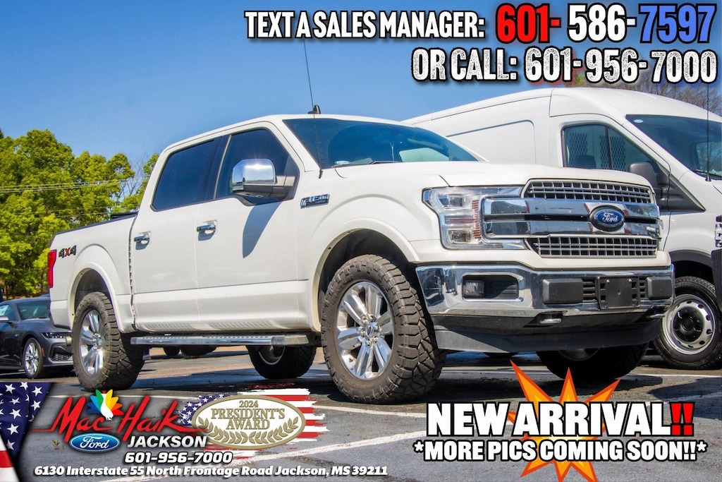 Star White Metallic Tri-Coat 2020 Ford F-150 Lariat 4WD 10-Speed Automatic 5.0L V8 F-150 Lariat, 4D SuperCrew, 5.0L V8, 4WD, 110V/400W Outlet, 2nd Row Heated Seats, Class IV Trailer Hitch Receiver, Electronic Locking w/3.31 Axle Ratio, Electronic Stability Control, Engine Oil Cooler, Equipment Group 502A Luxury, GVWR: 7,000 lbs Payload Package, Heated Steering Wheel, Lariat Bed Utility Package, Lariat Chrome Appearance Package, Leather-Trimmed Bucket Seats, LED Sideview Mirror Spotlights, Power Glass Sideview Mirr w/Chrome Skull Caps, Power Tilt/Telescoping Steering Column w/Memory, Pro Trailer Backup Assist, Quad Beam LED Headlamps & LED Taillamps/Fog Lamps, Radio: B&O Sound System by Bang & Olufsen, Rain-Sensing Wipers, Remote Start System w/Remote Tailgate Release, Reverse Sensing System, Tough Bed Spray-In Bedliner, Trailer Tow Package, Twin Panel Moonroof, Universal Garage Door Opener, Upgraded Front Stabilizer Bar, Wheels: 20" Chrome-Like PVD, Windshield Wiper De-Icer.