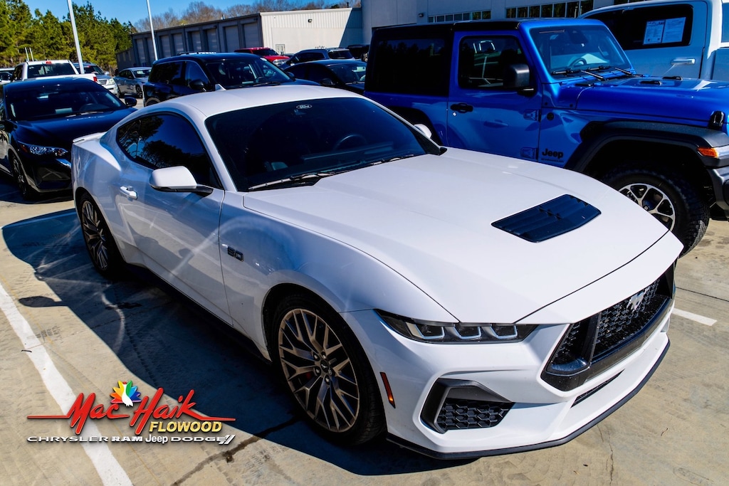 Oxford White 2024 Ford Mustang GT Premium RWD 10-Speed Automatic 5.0L V8 Ti-VCT Local Trade, B&O Sound System by Bang & Olufsen, Equipment Group 401A High Package, Ford Co-Pilot360 Assist+, Illuminated Door-Sill Scuff Plates, Leather-Trimmed Bucket Seats w/Color Accents, Memory Driver Seat & Mirrors, Security Package.