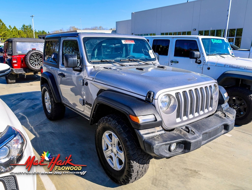 Billet Silver Metallic Clearcoat 2021 Jeep Wrangler Sport S 4WD 8-Speed Automatic 2.0L I4 DOHC 7.0" Touchscreen Display, Air Conditioning, Air Conditioning w/Auto Temperature Control, Air Filtering, Apple CarPlay, Automatic Headlamps, Cluster 7.0" TFT Color Display, Deep Tint Sunscreen Windows, Front 1-Touch Down Power Windows, Google Android Auto, GPS Antenna Input, Integrated Center Stack Radio, Leather Wrapped Steering Wheel, Power Heated Mirrors, Quick Order Package 22S Sport S, Radio: Uconnect 4 w/7" Display, Remote Keyless Entry, Security Alarm, SiriusXM Satellite Radio, Speed Sensitive Power Locks, Sport S, Sun Visors w/Illuminated Vanity Mirrors, Technology Group, USB Host Flip, Wheels: 17" x 7.5" Tech Silver Aluminum.