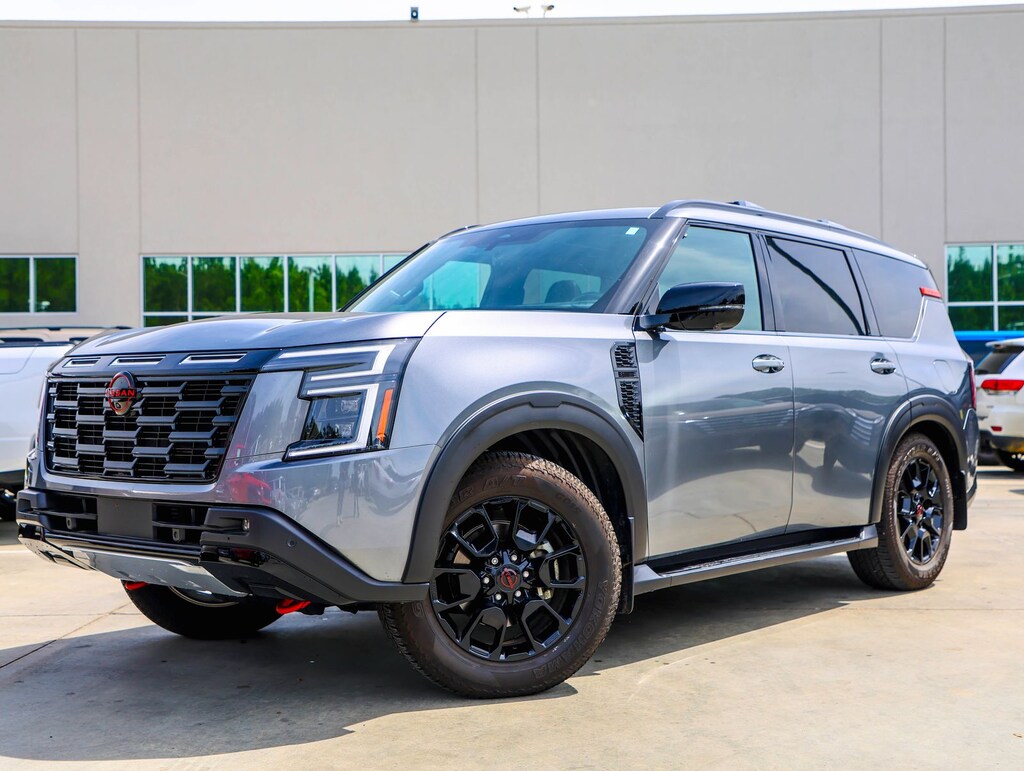 Gun Metallic 2025 Nissan Armada PRO-4X 4WD 9-Speed Automatic 3.5L DOHC Local Trade, 4WD, Biometric Cooling, Hands-Free Power Liftgate, Heated & Ventilated Driver & Passenger Seats, Heated 2nd Row Seats, In-Car Camera, Intelligent Dash Cam, Panoramic Moonroof, PRO-4X Premium Package.